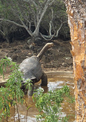 Snorkeling was next on the agenda. Although the water was slightly turbid, we were all delighted to swim with over a dozen sea turtles, two frisky sea lions, and some of us saw cormorants and penguins, too. Back again on the ship we were eager for lunch and a siesta; meanwhile the Captain and crew navigated on to anchor off Punta Espinoza, Fernandina.