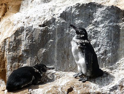 All of the guests on board the National Geographic Islander boarded our fleet of Zodiacs for an hour of slow exploration along the rocky shoreline. We saw a couple dozen sea turtles, flightless cormorants, two motley, molting penguins, sea lions and very large marine iguanas.