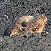 Inland, we observed a hoard of iguanas facing to the sun as if to worship it. Our guests had to be very careful with their steps in order to not step on the iguana’s bodies. We crossed the iguana’s territory and headed to the black sand beach where we found a group of sea lions. The most attractive was a big male who was barking and barking sonorously without stopping, ordering his females to move to the upper part of the beach. In this case we also had to obey because he looked very aggressive.