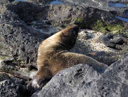 Back at the black sand beach we had a wonderful swim and either relaxed on shore or returned to the ship when we pleased. A Peruvian lunch, short siesta and my talk about Charles Darwin occupied the rest of the early afternoon, and at 1530 we boarded the Zodiacs, with Naturalist Paul and Ximena, and set off for a lava hike.
