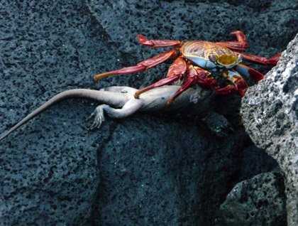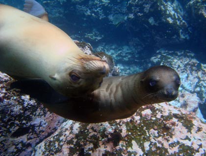 Later on, during our Zodiac ride along the coast at Punta Vicente Roca, we had the company of twenty or so penguins that together with some brown noddy terns were very busy chasing fish. They were all around us and at some point it looked like they were going to jump onto the Zodiacs. We were in shock by our good fortune, at the same time dozens of turtles were popping their heads here and there in the water to breath. Not necessary to mention that the snorkeling was outstanding.