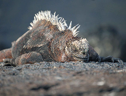 Once we returned aboard from Urbina Bay, we set sail to Punta Moreno; there the extensive lava flows from centuries ago are frozen. We looked for wildlife in this rather unusual place; everywhere one looks around we are surrounded by miles and miles of dark lava, but when one explores a bit more, then we find a few ponds of water where life abounds, and these small patches of life are engulfed by an ocean of lava. We also went on a Zodiac ride to look for penguins, iguanas, turtles and incredible vegetation like prickly pear cactus growing close to the ocean side.