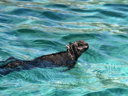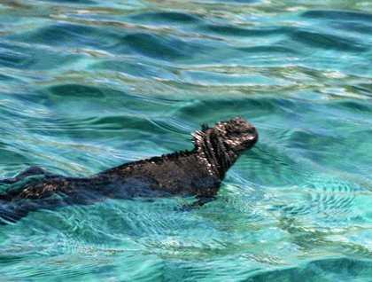 Impressive volcanic formations surround this turquoise channel of water where several animals are found, among them is one you may not expect to see at the Equator, the elegant Galápagos penguin. There are not too many at this location but there are certainly enough to content our souls and eyes. From our comfortable perch on the Zodiacs, we watch these birds put on their best show. As we continued our exploration we saw the always inquisitive sea lions, the dinosaur-looking marine iguanas and several other shore birds. That was fun! But wait...we had something else to do, swim with penguins!