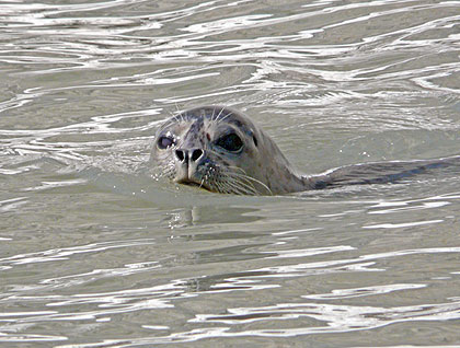 We passed Marguerite Island and continued to South Sawyer Glacier. Harbor seals, many with pups at their side, were resting on the icebergs in front of the glacier. Some popped up in the water near the ship, turning curious faces with big brown eyes toward us. If the tidewater glaciers continue to recede as rapidly as they have recently, the seals will no longer have the iceberg habitat that is so important to them, as the ice provides birthing platforms and protection from predators. Arctic terns, however, benefit from the melting glacier, which provides nesting habitat on the bare rock and gravel that it leaves behind.