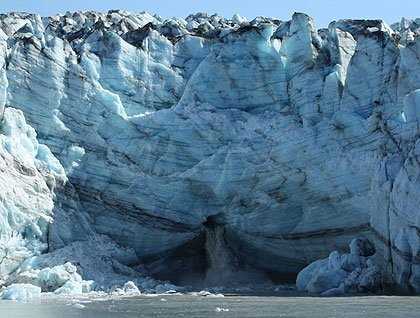Our last stop in the northern part of the park was in front of Lamplugh Glacier. Undoubtedly the bluest glacier in the park, Lamplugh is easy to approach, as its face is (barely) land-locked. The freshwater melt stream flowing out of the face of Lamplugh was a raging torrent of coffee-colored water. It poured out of a hole, part-way up the smoothest aspect of the glacier’s face.