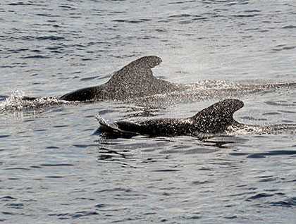 During several months of the year, nutrients from the depths of the sea floor are brought up to the surface by sea currents called up welling. These nutrients meet the light of the sun at the surface of the sea and a great web of food and predators begin to interact forming the foundation of all marine life. In this rich environment a diversity of marine mammals come to feed, including both toothed and baleen whales. These waters just off of Isla Carmen are known for high productivity due to extremely deep waters, providing all the right conditions for phytoplankton and zooplanktons to form a pyramid of food and predators moving towards the largest mammal on the planet. The National Geographic Sea Bird continued her meandering, led by natural history staff on the bow, giving directions according to what was spotted. Short-finned pilot whales were spotted late in the morning. They surfaced in the customary chorus line; their blows could be heard from some distance as this group of whales surfaced, dove under the National Geographic Sea Bird and came up on the other side of the bow….back and forth, these whales continued making short dives, then resurfaced to watch all of us, as we watched these curious and active toothed whales.