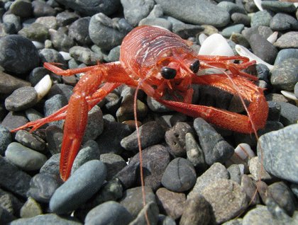 Magdalena Bay is protected by three large islands that have been carried here over 12 million years ago on a geologic plate that no longer exists. The islands were scraped off the surface as the plate dove or subducted below the western edge of Mexico. They represent the only areas of rock that have gone through change from high pressure or temperature, called metamorphism by geologists. We discovered serpentine and abundant quartz. One group found an endemic primrose, a Margarita rose, named after the island to the south. Immense bands of dead pelagic crabs lay scattered along the gravel beach, stranded by a higher tide. These creatures are bright scarlet in life and live in open water where they provide food for hungry birds and other predators. They look like a bit like tiny lobsters, and so are often called lobster krill.