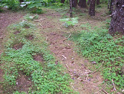 Our first walk this morning kept the bear theme alive as we landed on a very low tide at Fox Creek for a short stroll to a set of tracks embedded in the forest floor by generations of bears walking in exactly the same spot. Why these bears choose to place their feet in the now inches-deep foot-shaped depressions is a mystery – but mystery is why we visit wild places. We don’t always understand what motivates our animal friends, but we sure do like to watch them. And when a mink emerged from the beach grass intent on checking under every piece of kelp exposed by the low tide, we all sat back and watched the show. The mink was not very concerned about our presence as it searched for something to eat…a small crab, a fish trapped by the outgoing tide…and it stayed around long enough for the long-hikers to return from their visit to the bog.