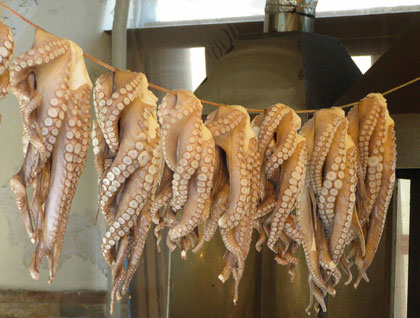 There was little to no room at the dock due to the fact that Poros is popular among Greeks and we are at the height of the Greek holiday season so we anchored in the harbor. Shortly after breakfast we started running Zodiac shuttles to the waterfront. Once ashore we were free to explore this small harbor town on our own. The local market was full of local fish that had been brought in that morning. Many of these were still alive as they were iced down to keep them fresh. Those that came by the market later reported that these fish did not stay on the tables long in that they were bought up quickly by the local merchants. Some chose to hike to the clock tower at the top of the island and were rewarded with views of town and the nearby Peloponnese peninsula.