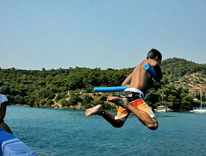 A wet and windy ride brought us back to the Panorama for lunch. While we dined, the ship repositioned a short distance to a new anchorage by a local beach. Here we found great protection from the wind and were able to enjoy an afternoon swimming and playing on a sandy beach. Conditions were much better than expected so we were able to spend the latter part of our afternoon jumping from Panorama’s rail one last time.