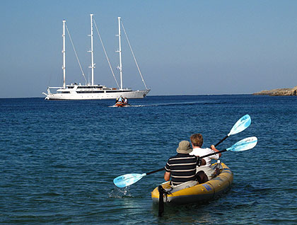 Late in the afternoon, our guides Sophia and Effie spoke to us about the history of Greece, and the Cyclades in particular. In the early evening, just before sunset, we sailed into the caldera of Milos Island. The light was gorgeous on a flat calm sea, making a perfect photo opportunity.
