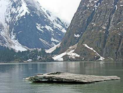You know that it’s a good day when you see a humpback whale at the end of a rainbow. This was our omen as we turned east from Stephens Passage into Tracy Arm, a narrow, twisting, glacier-carved waterway with spectacular scenery and two tidewater glaciers that spill from the Coast Mountains into the deep, salty water at the head of the inlet. We spent the morning cruising toward that destination, with a few distractions along the way.