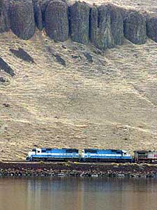 As we awoke, alpenglow illuminated Mount Hood. The first of our Cascade volcanoes, Hood, was framed by the towers of John Day Lock and Dam’s guillotine gates. Passing through the lock chamber – the world’s highest - we soon saw a bizarre feature on the hillside. Standing midst the rolling hills and angular basalt walls of the gorge was a full-sized, concrete reproduction of Stonehenge! This strange edifice was the work of Sam Hill. Quirky visionary, pacifist, and philanthropist, this entertaining anomaly left his mark on much of the Columbia River Gorge. After a brief stop at the henge, we went on to Sam Hill’s drive-in mansion overlooking the gorge. Neither Sam’s wife, Mary Hill, nor his daughter, Mary Hill, were able to occupy the place, so Sam was inspired to make it into a museum. Dedicated in 1927, the museum opened in 1940 to display a harmonious blend of Native American basketry, Rodin sculpture, and royal Romanian furniture. The collection of this museum, truly as fine as it is peculiar, was outdone by the special events on the museum grounds. A group of Yakima Indians had set up a tipi, a mat lodge, and tables with various crafts displayed. While we were there, a ceremony was going on, in part to commemorate Lewis and Clark’s passage. The congregation, facing east, heard songs and the beating of the sacred twelve drums.