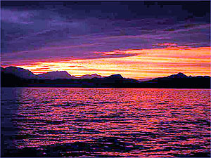 As the last boats made their way home, the skies began a very slow turn from light pink and peach to deep reddish-orange..."red sky at night, sailors delight!" Could this mean that the sun would return for us tomorrow as we approached the nursery area for the California Gray whales? We could only hope that this first lucky day would only feed into many more.