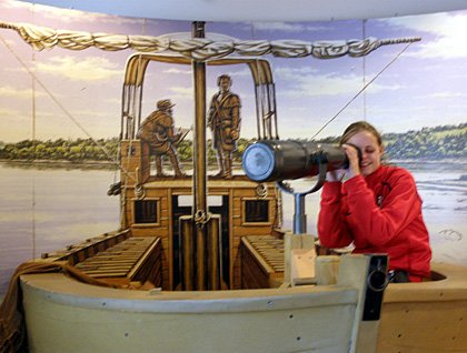 One of these events is the Lewis and Clark expedition, or Voyage of Discovery. Here in an extensive display of their journey, is an interactive exhibit of the keelboat that carried them as far as the Mandan villages of North Dakota. One of our young guests enjoys the excitement of exploring the new country they are traveling through, much as did those adventurers of two hundred years ago.