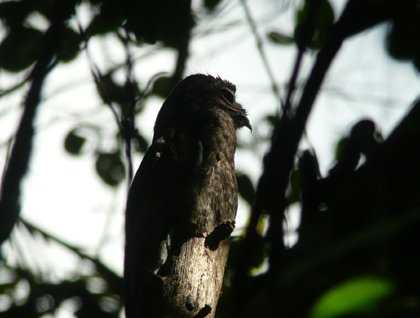 Exploring deeper in the trails inside the park we were able to find one of the main elusive birds that live in this forest: a common potoo. Despite its name, this bird is hard to find since they resemble a piece of broken branch amongst the dry vegetation.