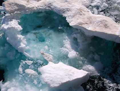 The weather gods continued to smile on us, as it was a beautiful morning with blue skies and sunshine. It was a great chance to spend lots of time out on deck taking photos of the beautiful blue pools in the ice and of course searching for wildlife.