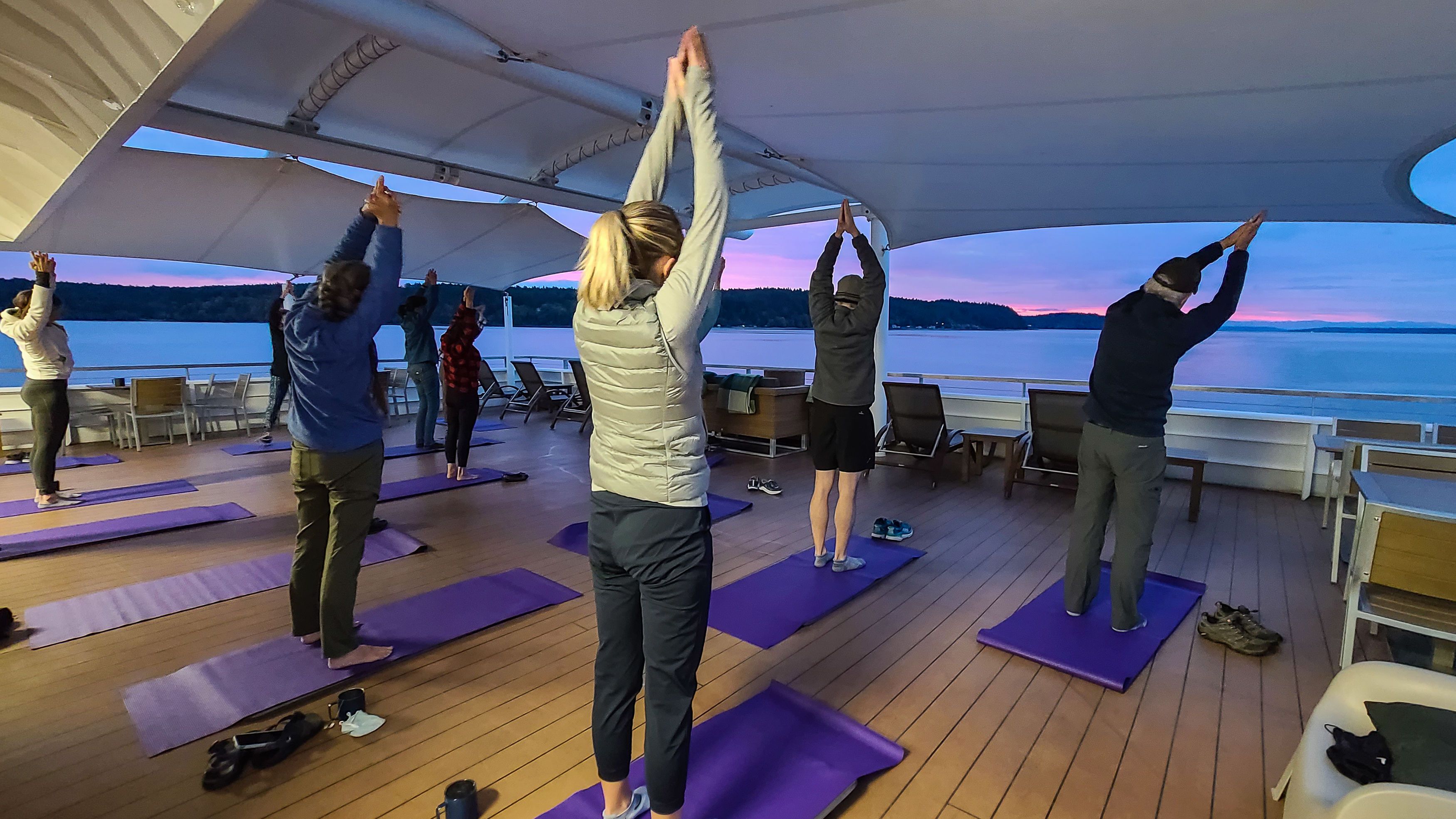 Today, National Geographic Endeavour II visited Cerro Dragon, located on the north part of Santa Cruz Island. We found one of the largest colonies of land iguanas. During our hike, we spotted the iguanas all around the trail. Some basked on the vegetation, and others were active. We saw the zigzag head movement they use to protect their territory and impress females. An Ecuadorian buffet lunch was set up in the dining room. We started with the traditional ceviche and ended with tres leches for dessert! We enjoyed snorkeling and Zodiac rides. We observed wildlife all over the place, including spotted eagle rays, sharks, blue-footed boobies, great blue herons, marine iguanas, and hundreds of other animals. They all reminded us why the Galapagos is so special.
