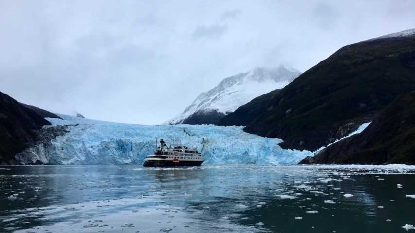 We started this morning navigating the narrow Garibaldi Fiord. The berg bits scattered in the water were giving us clues of what lay ahead at the end of this deep valley: the Garibaldi Glacier!
