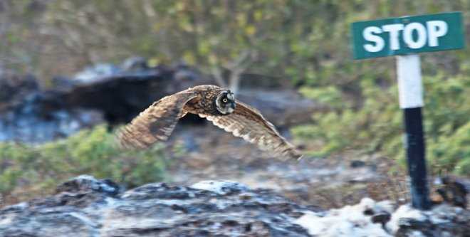 The trail led those adventurous among us for a steep climb up a narrow fissure to the cliff top (about 90ft elevation) for a lovely hike along fairly level terrain, although the surface of old, cracked lava is not flat!. We followed the trail through a Palo Santo forest to a storm petrel colony, passing boobies and frigates along the way. We got to see the amazing short eared owl waiting to catch a storm petrel that are here by the thousands. We also saw many sea birds and even some fur seals basking on the rocks after the hunt of the day. All this accompanied by a spectacular sunset ended another beautiful day in the Galapagos.