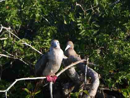 Today we arrived to a northern Island of the Galapagos. Early in the morning we went out to kayak and enjoy the view, the fresh air and the sound of the water coming in and out from the shore. Back on the National Geographic Islander everyone wakes up to get breakfast and then to get ready for landing on a white coral sand beach. Once there, we follow the trail set by the National Park’s regulations. As we walked along this path we found different ages of Frigate Birds: chicks, juveniles, adults flying and some other adults with red inflated pouches.
