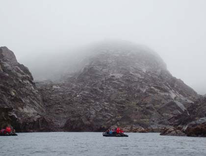 Early in the morning, around 6:30 a.m., some of our early-bird guests jumped onto kayaks and explored the island along the old caldera ring that forms Darwin Bay. This cliff is full of life: sea birds such as red-billed tropic birds nest there; some Galápagos fur seals love rest in the crevices during the day; and frigatebirds chase red-footed boobies to steal their food. How do they do this? Well, the frigatebirds grab the smaller birds by the tail and make them to regurgitate their food! What a competition!