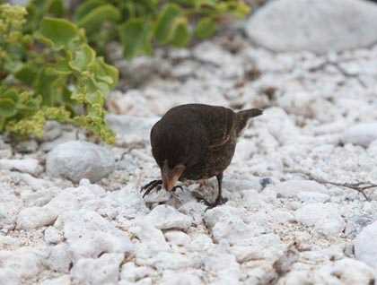 After breakfast we landed on a small beach for an amazing walk. All the animals were so close to us and their quantities were astonishing. Red mangroves are nesting sites for red-footed boobies and salt bushes are preferred for frigatebirds to nest and rest on. Here, the opuntia cacti grow as low bushes with soft, short spines because there are no giant tortoises or land iguanas to eat them. Almost at the very end of our walk, we found some very cute baby frigates.