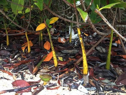 The expedition continued with an exploration of the beach, where an army of birds and sea lions filled us up with great excitement, and filled our cameras with many gigabytes, perhaps even terabytes, of pictures. The comical side of nature was expressed while we were watching a display of fiddler crabs, when a hilarious lava gull exploded in frenetic laughter. The red mangrove trees showed us that life goes steadily ahead, not only in bursts of courtship or in the frantic escapes from a predator, but also in a passive but firm way, as their propagules stick into the sand and spread roots and branches to soon become a gorgeous tree.