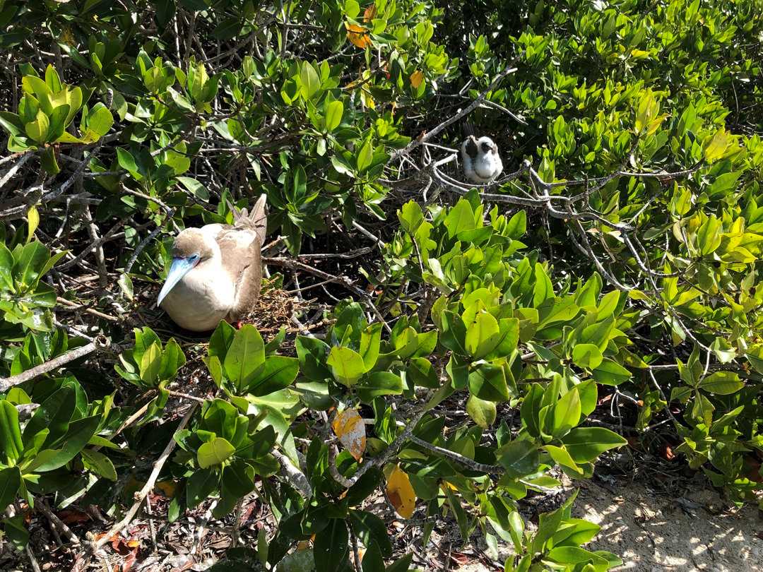 Fortunes soared further when we came across the male frigates whose red gular pouches were swollen and wings outstretched to attract (with luck and the right amount of charm) the females flying overhead. We saw red-footed booby chicks and adults, and after enough searching, we managed to spot the camouflaged eggs of a swallowed-tail gull. What an island!