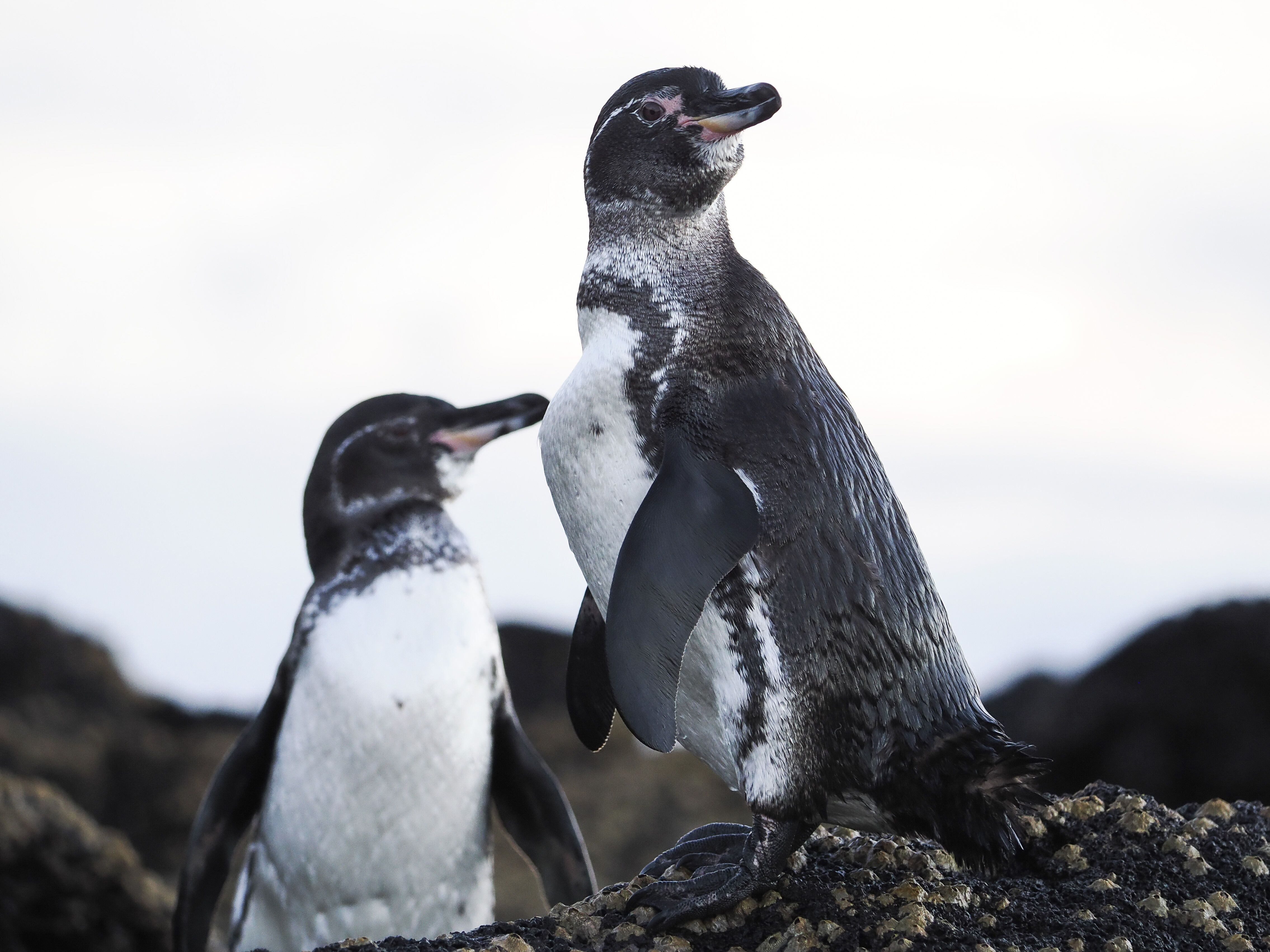 On National Geographic Endeavour II today, we explored Bartolome, home of a small colony of Galapagos penguins. Bartolome is one of the youngest islands, and it is located next to Santiago Island in the central part of the archipelago. After an amazing sunrise, we went ashore for a walk, and we were transported back to a time when the land was newly formed. We began our day by hiking to the top of a tuff cone known as the islet of Bartolome, named after the First Officer of The Beagle . Walking on this young island allowed us to understand the formation and volcanism of the Galapagos Islands. The rocks are a great way to understand the area and its geology. We spotted a few lava lizards and painted locusts, some of the very few animals on this island. As we reached the top, we had a great view. Our guests enjoyed the magnificence of Pinnacle Rock. After we visited one of the most iconic geological formations of the Galapagos, our breakfast was enhanced by dramatic views of the impressive volcanic landscape. We visited the beach near Pinnacle Rock, where we enjoyed how the sun made the sand sparkle due to a concentration of silica. Later, we went snorkeling along the channel between Santiago and Bartolome Islands. Many of our guests spotted whitetip reef sharks and very colorful parrotfish. The landscape was beautiful with lots of sea stars. We enjoyed the chance to be surrounded by Galapagos penguins and feel accepted as part of this environment. After a delicious Mexican lunch, we had lectures on the photography of reptiles and Darwin. Afterwards, we went to Chinese Hat Islet to snorkel from the Zodiacs. The area is home to a small colony of Galapagos penguins. In a sandy-bottomed, sheltered channel, our guests enjoyed swimming with whitetip reef sharks, rays, and many fish. It was a nice and sunny afternoon. After snorkeling, we had the chance to explore the unique, small volcano that formed an island in front of Santiago on a sunset Zodiac ride. After a spectacular day full of activities in the field, we returned on board. Every day in the Galapagos is an opportunity to reconnect with the beauty of nature through unbelievable encounters!
