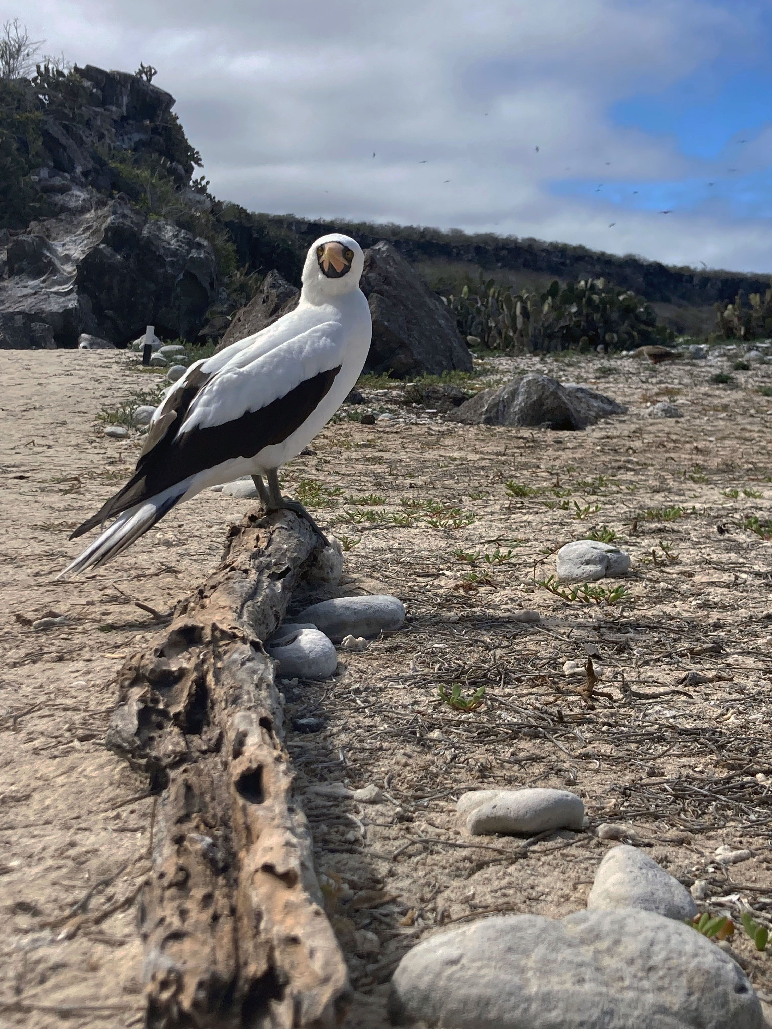 Today we woke up in Darwin’s Bay off Genovesa Island. This collapsed caldera is a unique place where thousands of seabirds can be observed in their different life stages. We disembarked in the morning for a natural history walk on the beach at Darwin’s Bay. We had a close look at red-footed boobies, one of the three species of boobies that nest in the Galapagos. We also observed Nazca boobies, frigatebirds, swallow-tailed gulls, and lava gulls. We had the opportunity to snorkel with Galapagos fur seals, the second species of sea lion that guests were expecting to see during this trip.