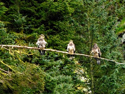 After lunch, we cruised a short way to the Inian Islands. As the tide streamed through the narrow passages separating these impressive islands from the mainland to the north and the much larger Chichagof Island to the south, it created whirlpools and eddies that roiled the water’s surface. Eagles swooped down amidst flocks of black-legged kittiwakes to feed on the hapless critters swept up by the tides and Steller’s sea lions dove beneath the waves, occasionally surfacing with a fish in their mouths. We were even fortunate enough to have some close encounters with humpback whales that came to feed in the nutrient-rich waters.