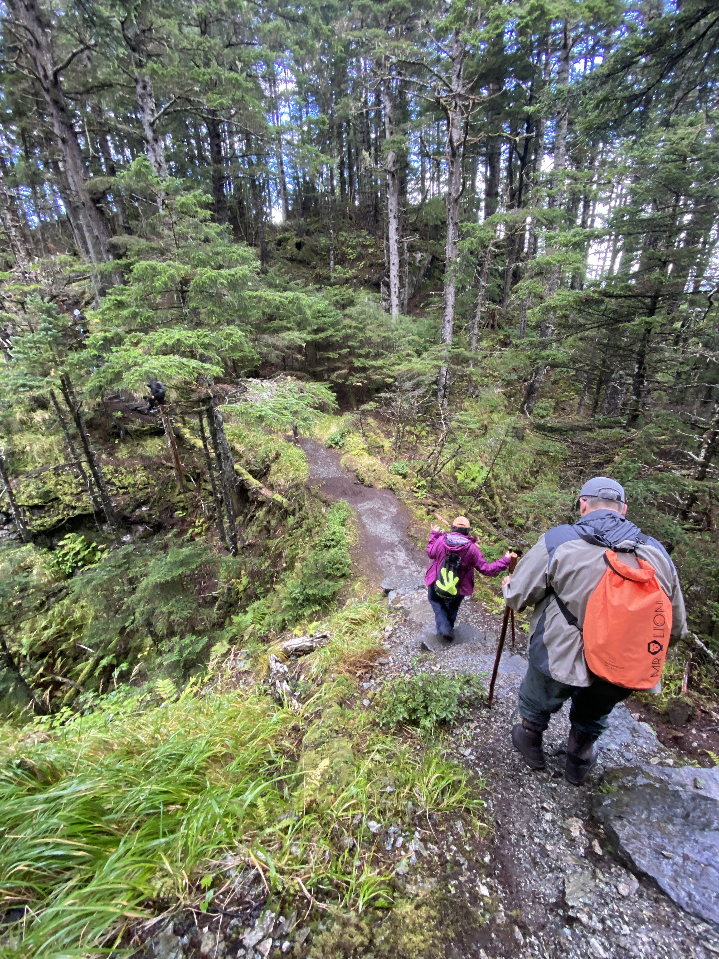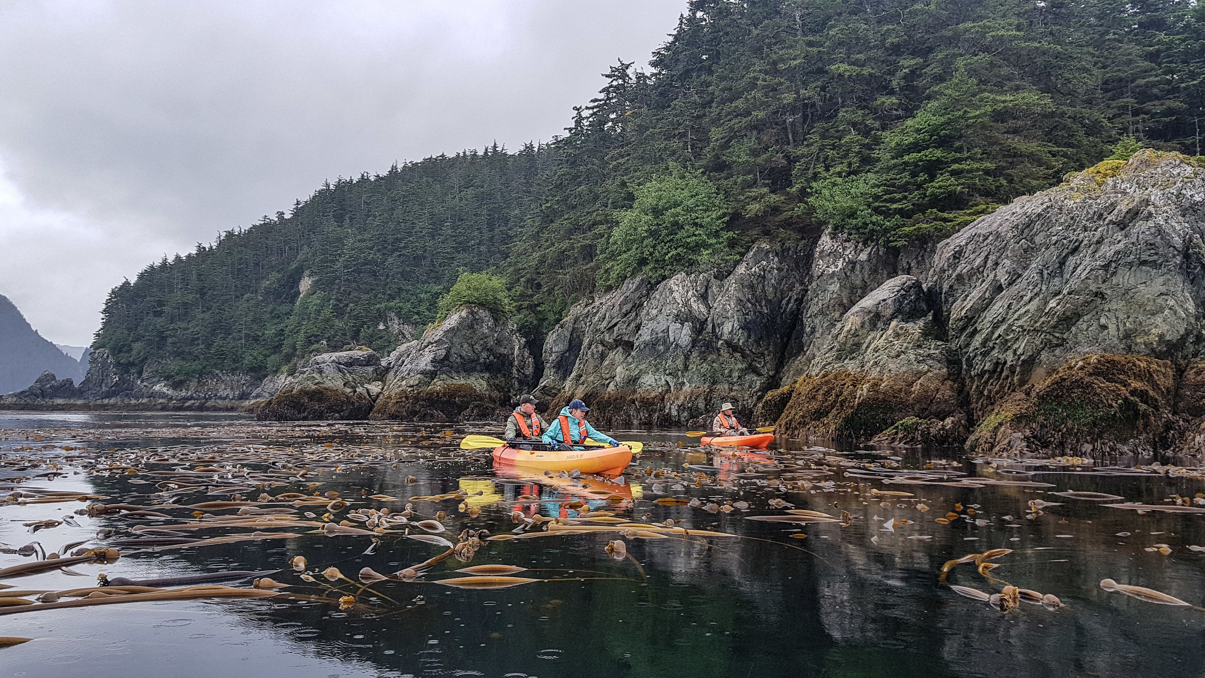 The voyage continues. After navigating through the Lynn Canal and then west to where the Cross Sound and the Gulf of Alaska meet, we anchored in Granite Cove, where our adventures began. In true Lindblad form, we rode Zodiacs from National Geographic Sea Bird to George Island, a former outpost during World War II. Just as we stepped onto the rocky shore, the clouds parted, and sunshine beamed upon us as if to welcome our exploration. Groups set out by foot and by kayak to take in the sights. We found a multitude of colorful lichens in the forest, seaweed on the beach, and sea stars in the tidal zones. No matter where we explored, we were bound to get great photos. Back on board, there was a buzz of chatter during lunch as we compared notes on what we saw. A quick repositioning of National Geographic Sea Bird brought us to “the Hobbit Hole” in the Inian Islands archipelago. Here, the color of the water is a striking teal. It’s the only entrance for the Pacific Ocean to pour nutrient-rich waters into the northern reaches of Southeast Alaska, so the chances of seeing marine mammals and seabirds are good. The afternoon Zodiac runs did not disappoint. We saw sea otters, harbor seals, rhinoceros auklets, and bald eagles…oh my! As we headed back to the ship in our Zodiacs, a light, cool drizzle began and gave way to a brilliant rainbow, uninterrupted by the buildings, traffic, or crowds we’re accustomed to. Lucky for us, we have a couple more days for moments like this one on our floating home.