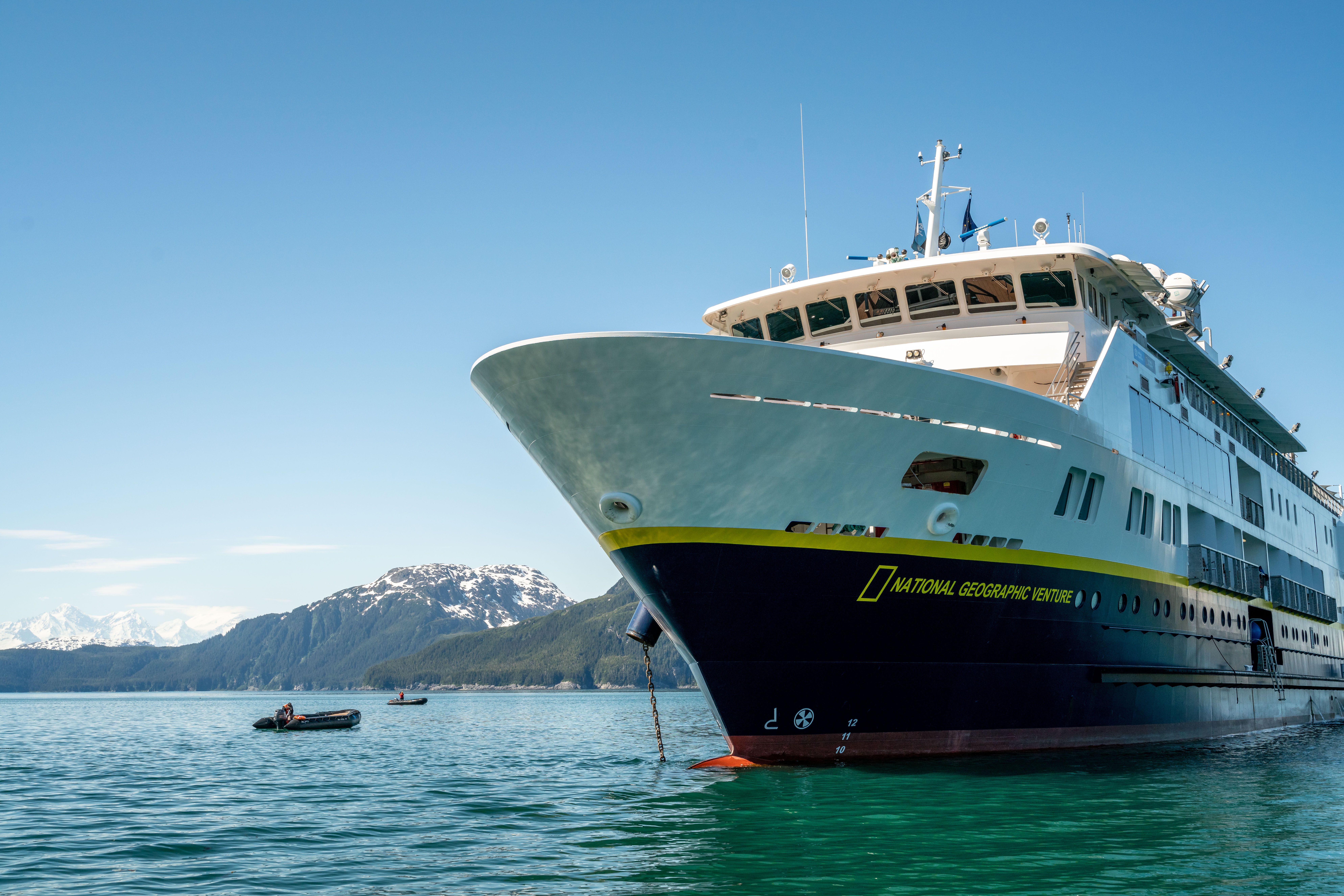 National Geographic Quest arose amidst light clouds within the protected waters of Ushk Bay. This area is known for a salmon stream and yields plenty of opportunity for kayaking and exploring the vast meadows of its inner waterways. On this day’s occasion, guests were able to hike and paddle their way along the coast of Ushk Bay and witness firsthand the life cycle of Pacific salmon making their way upstream. As we transited through Peril Strait, we were lucky to see humpback whales. These immense mammals were “lunge feeding” very near our ship. Being able to witness this event was unique for guests and staff. Lunge feeding is process through which individual whales push their gaping mouths through the surface and collect any fish or planktonic invertebrates in the process. Witnessing this behavior was truly a remarkable experience for all. We will cherish this moment for a lifetime.