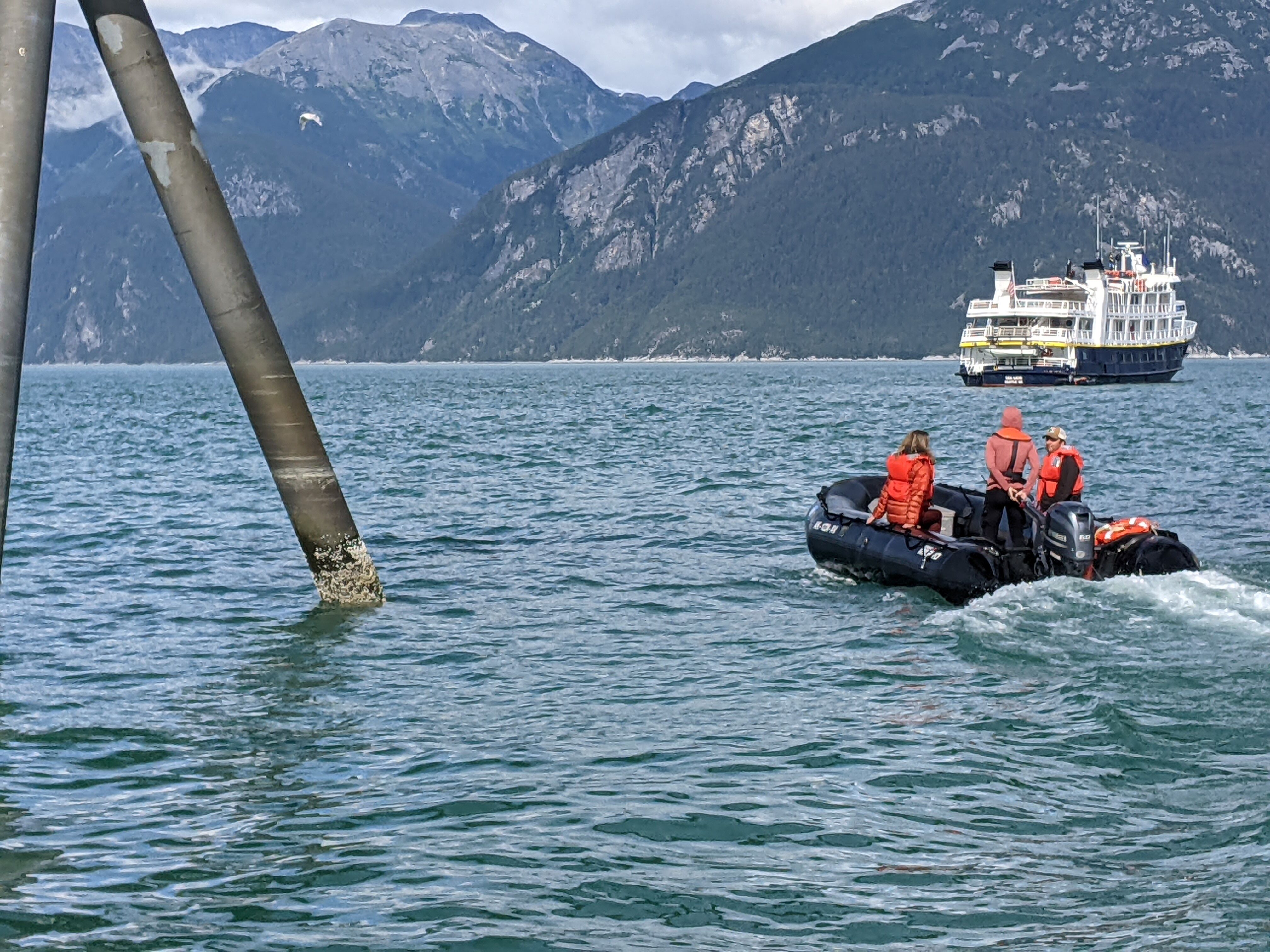 After traveling through the night, we awoke this morning in the secluded bay next to George Island. The day began with sightings of sea otters, bald eagles, and a variety of other birds. We made a shore landing in Zodiacs and split up into different adventure groups to enjoy the morning exploring George Island. We repositioned during lunch and then explored the Inian Islands in Zodiacs. We observed the bounty of wildlife drawn to this area to feed, thanks to the upwelling of nutrients caused by tidewaters rushing in between the islands from the Pacific Ocean.