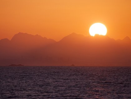 Our passage through the Georgia Strait and into Canada has been a good introduction to the welcoming nature of these beautiful fjords. Just as the pink moon set, the sun rose, bathing the National Geographic Sea Bird in golden light. This protected stretch of ocean isn’t just calm, it’s like floating across a mirror.