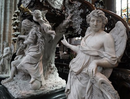On entering St. Baaf's one is immediately struck by the scale, grandeur and complexity of the building. The original religious foundation was established in the 10th century. Added to, rebuilt, and extended over the centuries, the cathedral was essentially raised to the greater glory of God, to elevate one's thoughts heavenward and to engage. Fashioned by the consummate skills of a team of craftsmen in the 18th century, its Rococo pulpit is an arresting centrepiece. The highlight of our visit here was the magnificent triptych, The Adoration of the Mystic Lamb. This extraordinary work of art was completed in 1432 and consists of 20-panel alter piece, the work of the famous Van Eyck brothers.