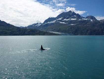 Heading south from the tidewater glaciers, the National Geographic Sea Lion slowed at Gloomy Knob, and all souls aboard joined in the search for wildlife. The sun was out, the rocks lit up in steep brilliance. A few mountain goats wandered the cliffs. Near the top of the granite, we suddenly spotted a brown bear, our first of the trip! Back and forth he wandered before stopping directly on the ridgeline and looking regally into the distance, as though posing in profile for our eager cameras and binoculars. After he ambled off, we took a moment to admire the Fairweather Mountains, ironically named by Captain James Cook because today was one of very few fair weather days when the highest coastal mountains in the world come into view.
