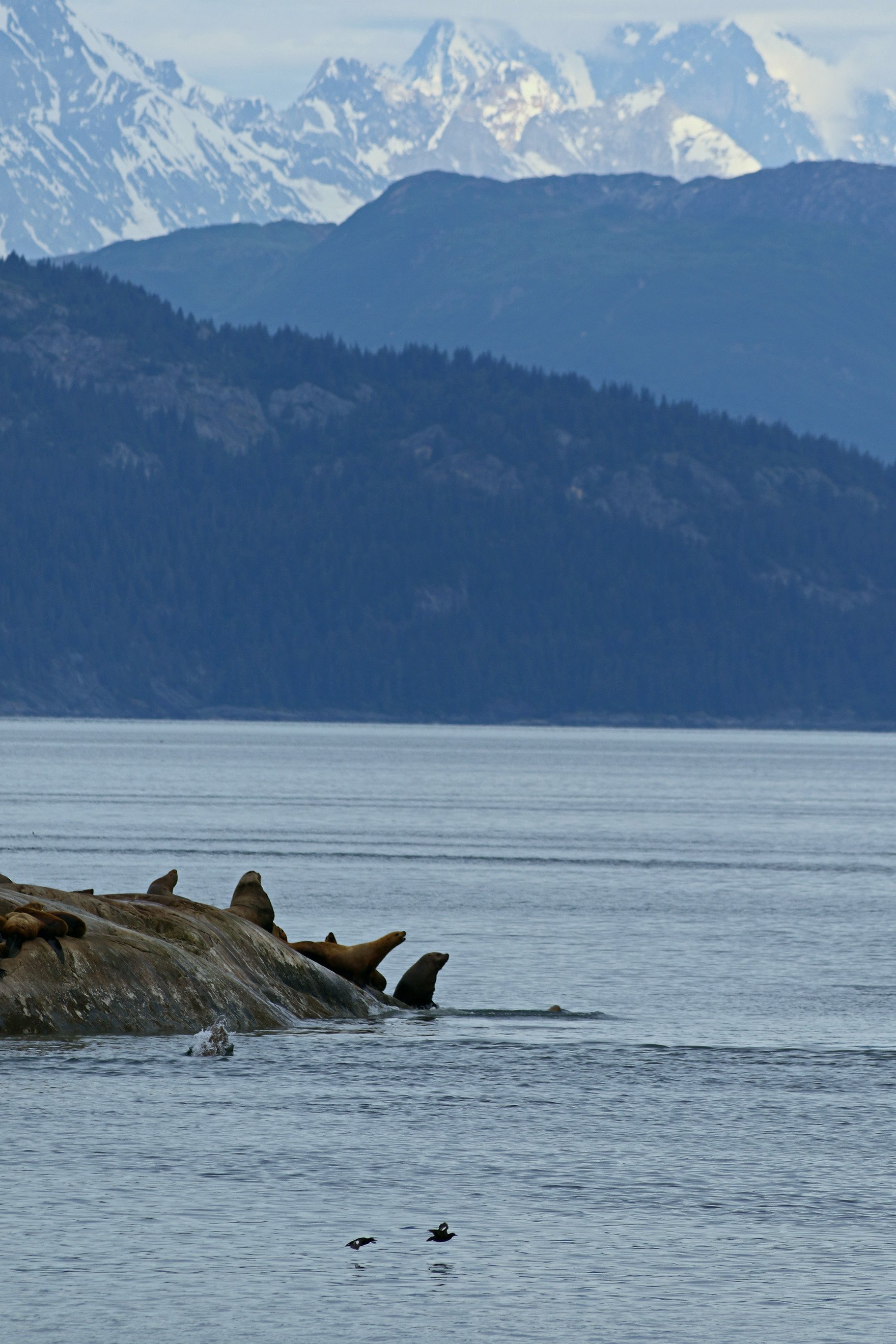 Birds squawking, with feathers a flurry, were echoed by the guttural outbursts from piles of sun soaking Steller sea lions lining the rocky coast of South Marble Island. The bow was a bustle, enjoying wildlife sightings as we forged deeper into Glacier Bay. Some of our younger guests were able to get a closer look at National Geographic Sea Bird’s bridge with an exclusive tour by Captain O’Brien. Then, up on the steep cliffs of Gloomy Knob, “Great goats galore!” was exclaimed on the bow. Once one mountain goat was spotted, more seemed to appear and multiply in number before our very eyes as they were scaling the mountainside or taking an afternoon siesta. Park Ranger Chelsea went on to show us some video footage of the watery underside, just below Gloomy Knob, where NOAA scientists had discovered deep, cold water corals that were brimming with color and life over 400 feet below the surface!