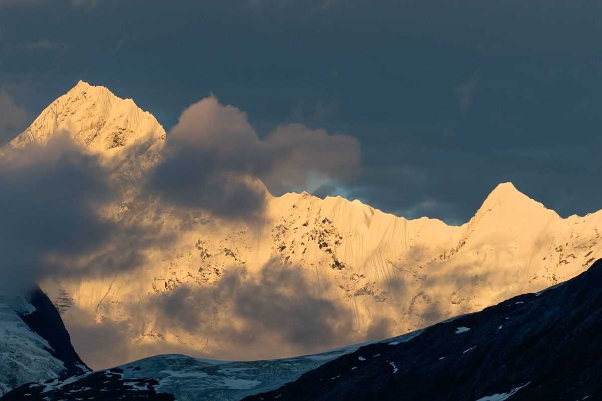 The alpenglow fell upon twin 10,000’ peaks which rest as sentinels to the Johns Hopkins Glacier, whose countless icebergs provided a resting platform for harbor seals. The dramatic fjord was filled with the remnants of yesterday’s monsoons, whose waters trundled down the mountainsides with the enthusiasm of a child on Christmas morning.