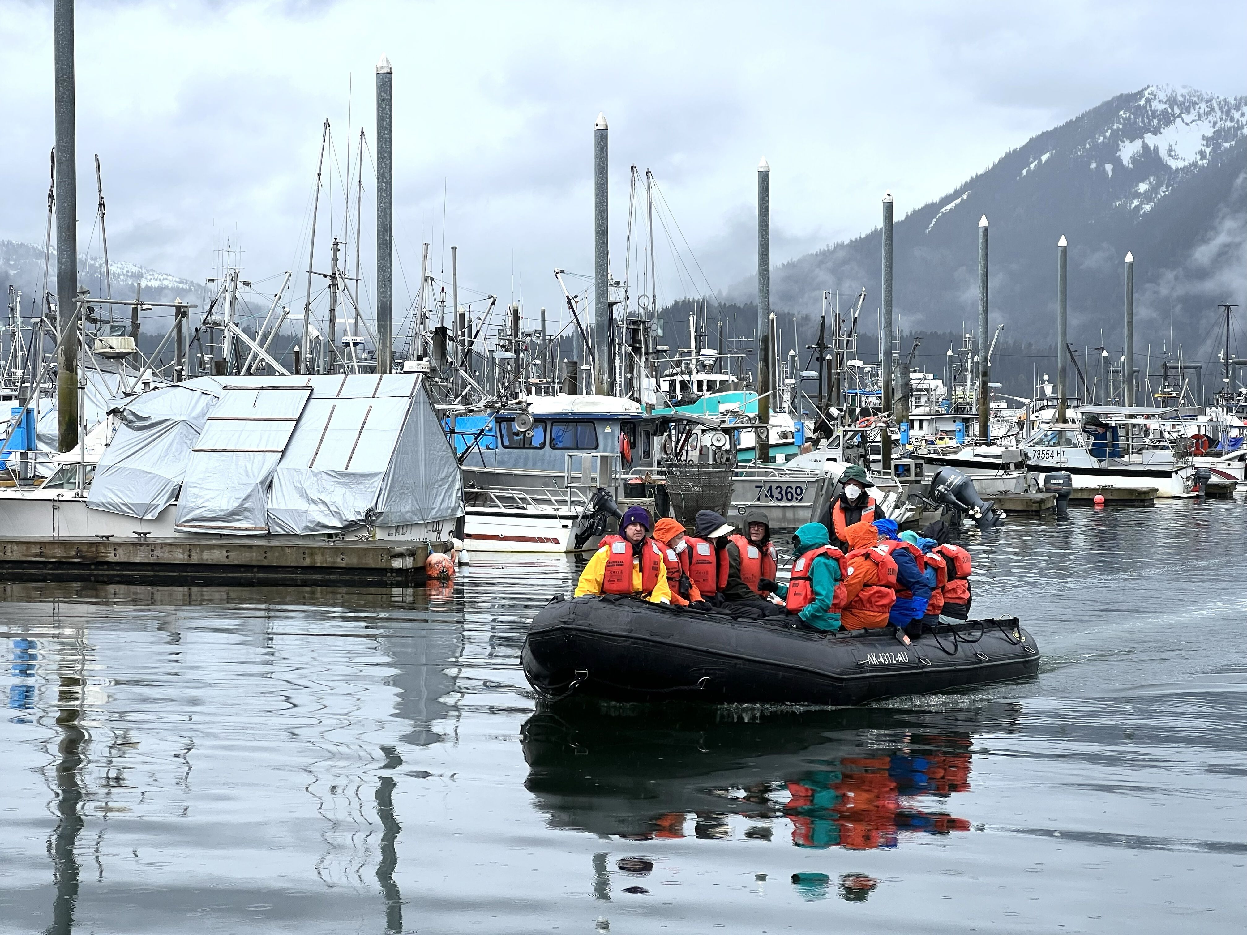 We then cruised into Icy Strait where a large group of Dall’s porpoise set upon us. These spunky little cetaceans rode the bow wave of the ship for almost 30 minutes. The fastest marine mammal in these waters, they had little trouble keeping up with us. Eventually they turned west, leaving us to continue towards Tracy and Endicott Arm, where more glaciers await us tomorrow.