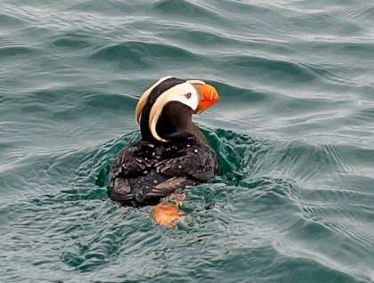 Our first stop was at South Marble Island, a seabird rookery where we watched glaucous-winged gulls, black-legged kittiwakes, pelagic cormorants, tufted puffins and Steller’s sea lions hauled out on the rocky shore.