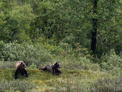 We continued on until two brown bears were spotted feeding on clumps of soapberries. One sprawled on its belly and munched on other low-growing berries like a tired dog might feed from a bowl. It was the berries that consumed them and visa versa.