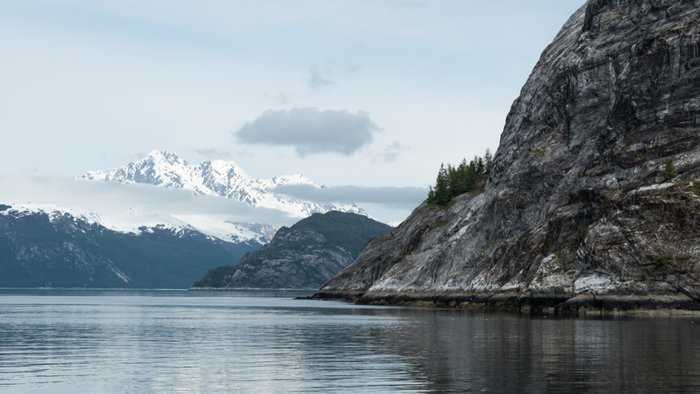 Our next stop was Gloomy Knob, named for its heft of dark rock upon which mountain goats did perch, protected by the sheer cliffs, which only they are fit to stand upon. Though it was clear that did not dissuade the brown Bears from attempting to make a meal out of the unsuspecting among them. High upon the cliff, we encountered an anomaly, a sow with three cubs. This is a bit unheard of, as brown bears normally struggle to support even two cubs, but it seemed that luck was with them as all three of the young were spry and of similar size. Reaching our most northerly destination after lunch, we came upon the Margerie Glacier. As far north as you can reach in the park, a well-traveled 60 miles from the entrance, the blue ice stuck out for our eyes to see. One of the few glaciers left in Alaska that is still moving forward, we witnessed its grandeur from as close as a maritime vessel dares to get. As the mountains peeked out from the cloud cover, we waited with great anticipation for the ice to fall, and as per usual, it did not disappoint. Perhaps the most special moment was when our expedition leader called for ten minutes of silence, allowing an enduring time to open our ears and experience every crack and crevice to the fullest of our sensory ability. The evening held a sunset walk at Bartlett Cove, where we disembarked the Park Ranger and the Tlinget interpreter who taught us so much throughout the day.