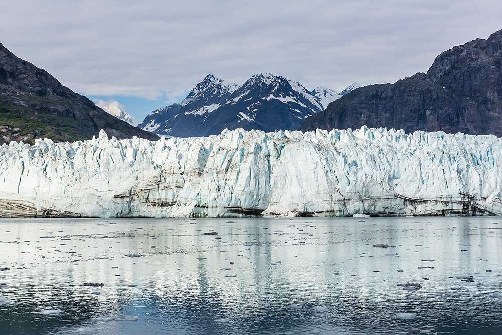 After transiting through a starlit night in Glacier Bay National Park, explorers abroad the National Geographic Sea Lion awoke at the foot of Margerie Glacier. Silence permeated the air as crimson sunlight dawned on Mt. Fairweather, rising from the sea 15,300 feet.  The explorers and crew stood quietly for over ten minutes allowing the essence of wilderness to relax into the day and their persona.  Ever so quietly, National Parks Service Ranger Cristi added  a dimension of time to  the days beginning after sharing a brief perspective of time from the Pleistocene forward into the current recession of glaciers here at the nation’s greatest tribute to glacier time.  Comparing historic photos of glacier positions and current observations of Margerie and Lamplugh Glacier made evident the rapid retreat of these fingers of the Brady Icefield.
