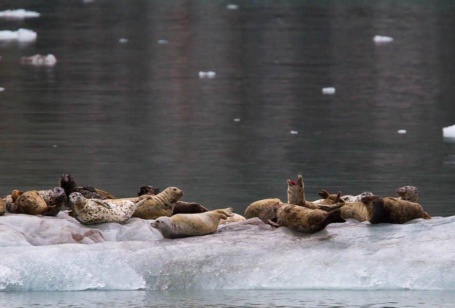 We crossed the boundaries to Glacier Bay National Park last night at midnight. This morning we woke up to one of the most scenic views at the face of Johns Hopkins Glacier. With a temperature of 5 degrees Celsius and low cloud cover, we listened to the thunderous sounds of falling ice. We witnessed the calving of the glacier several times.