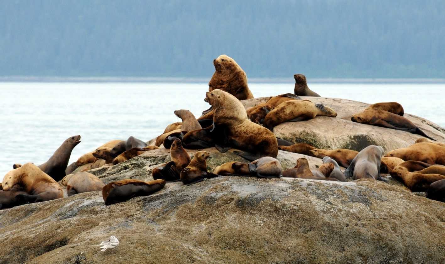 One of the first areas we visited was South Marble Island. This low island is home to many seabirds, eagles, and Steller sea lions. These large pinnipeds made many roaring sounds and barked at each other as we passed. We also spotted everyone’s favorite seabird – the puffin! There are two types here in the park, the tufted and the more uncommon horned. We had great views of both species from the bow as they swam along the shoreline.