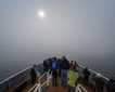 Today’s trip into Glacier Bay National Park started on a different note from any I’ve taken previously. We had stopped in Bartlett’s Cove last night to pick up Ranger Chelsea, and our Alaskan Native Interpreter Mary, then worked our way up-bay to Johns Hopkins Glacier while we all slept. Thus, we awoke to clear skies, cool temps, and the majesty of Johns Hopkins Glacier—how superb! All was not quiet at the glacier, and we were treated to several awe-inspiring and very loud calving events before we pointed our bow to the south for our trip through the park. On the way south we saw much wildlife, including brown bears, mountain goats, tufted puffins, Stellar sea lions, sea otters, and much more of Alaska’s wildlife heritage.