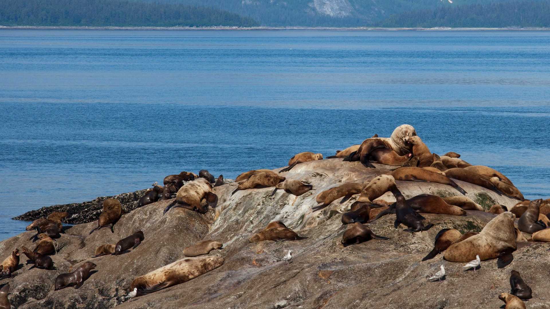 The day started with fantastic weather and a visit to South Marble Island, a small outcropping in the southern region of Glacier Bay absolutely riddled with Steller sealions. This species, known alternatively as the northern sea lion, is the northernmost and largest species of sea lion on the planet. With males reaching weights up to 2,000 lbs., those less successful reproducers will stay in adolescent male groups throughout the summer and wait for better fortunes for mating next season.