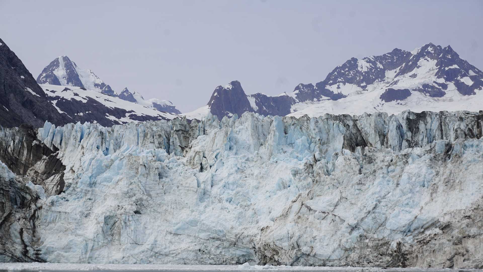 This morning we awoke to the cloudy mysteries of Glacier Bay. We started with breakfast by the Lamplugh Glacier and then cruised through milky blue waters filled with floating ice to the Johns Hopkins Glacier. The magnificent wall of the glacier demonstrated its flow and activity by calving and crumbling before our eyes, amplified by the crashing sounds as the ice shifts. On the ice floes we saw seals happily resting in their favored banana pose. Along the cliff faces a colony of kittiwakes crowded the ledges and filled the air.